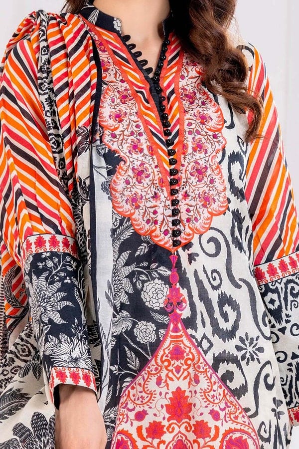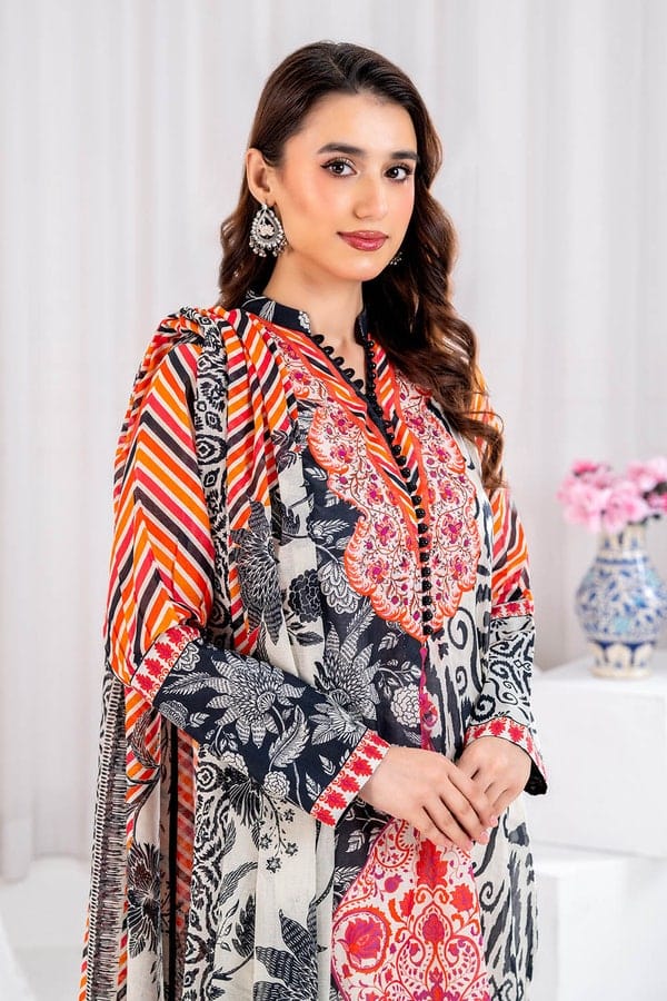 Upgrade your wardrobe today with this chic, timeless, and comfortable multi-color lawn suit that reflects sophistication withease.