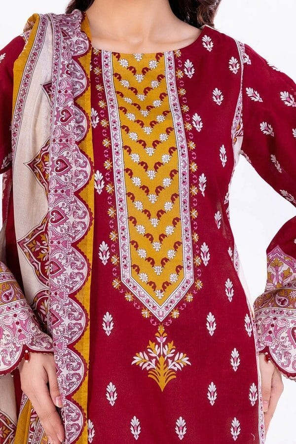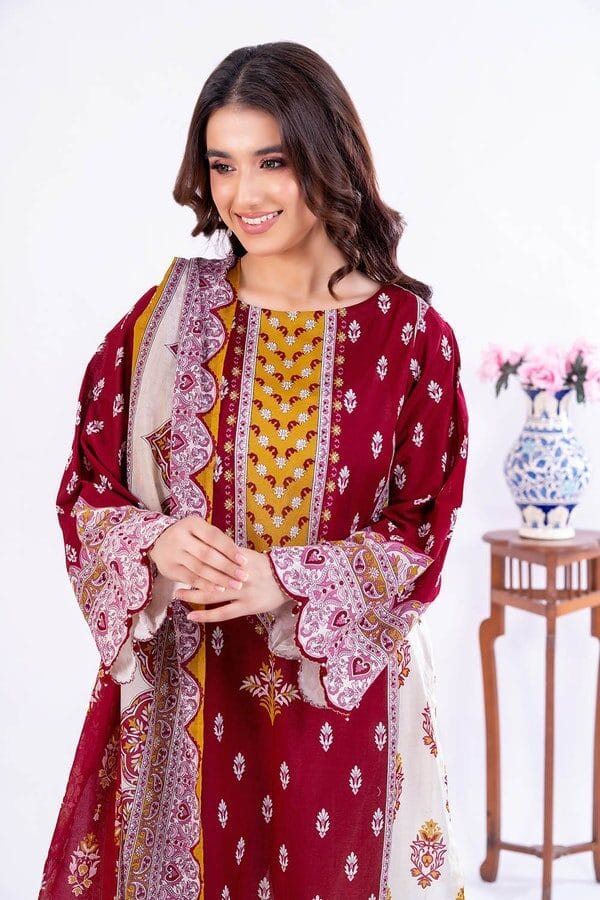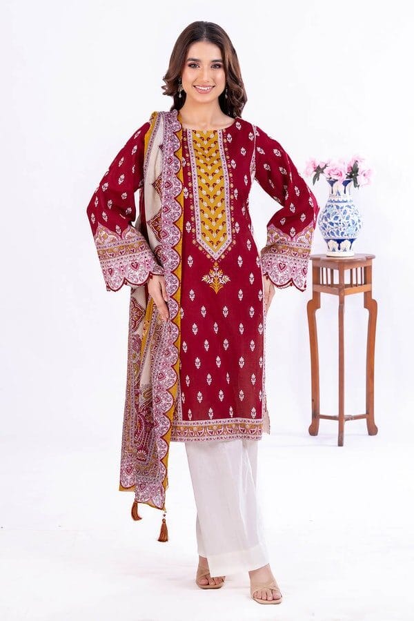 Elevate your everyday style with this elegant 3-piece maroon lawn suit. Featuring a beautifully printed lawn dupatta (2.25 meters), a stylish printed lawn shirt (1.75 meters), and a soft dyed trouser (2 meters), this outfit strikes the perfect balance between comfort and sophistication. The rich maroon shade adds a timeless charm, making it an ideal choice for casual gatherings, day wear, or evening outings.