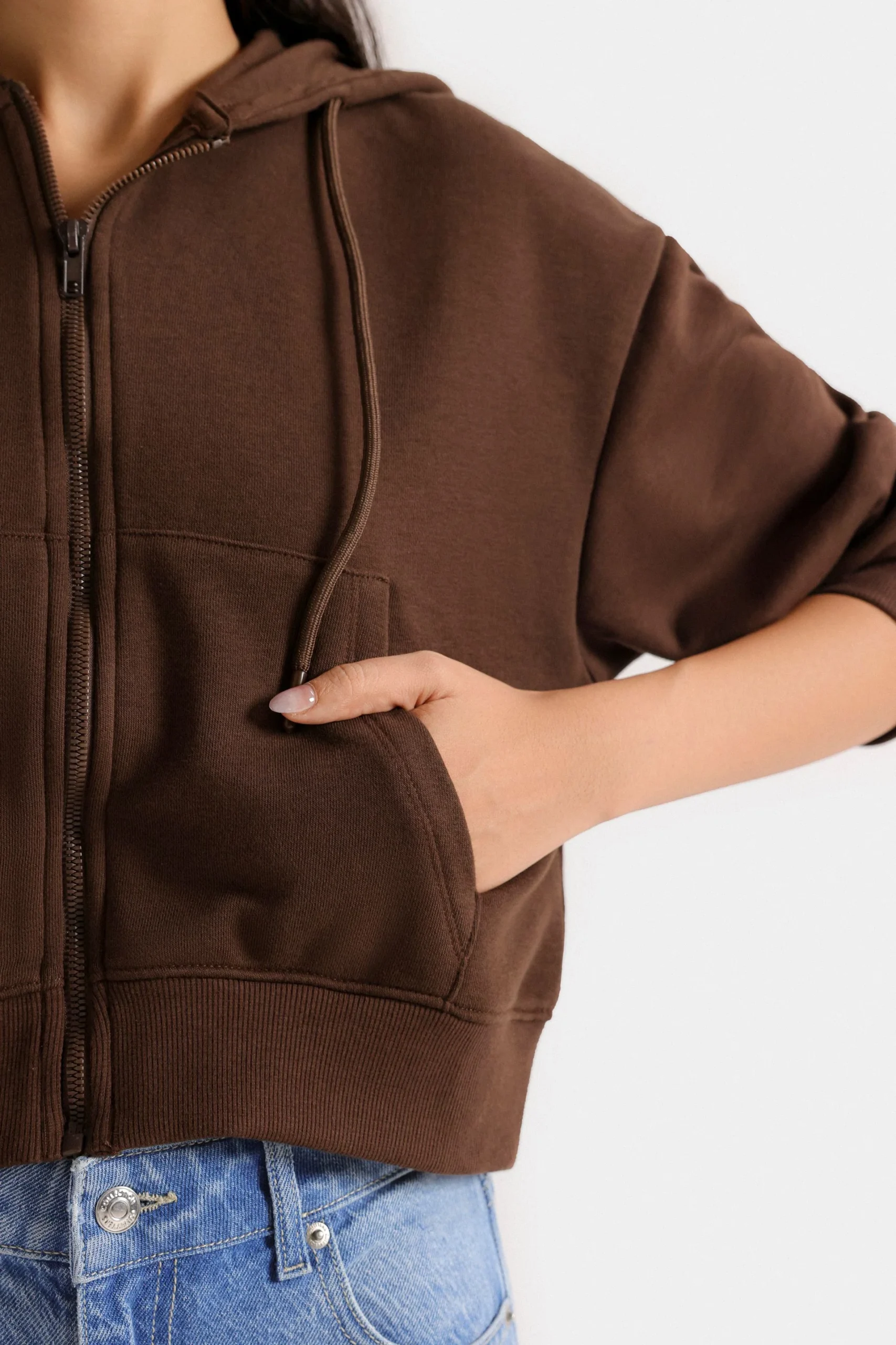 Stay effortlessly stylish in our Coffee Basic Zipper Hoodie. With its soft feel, cropped fit, and easy zip-up design, it’s the perfect pick for comfy, everyday looks.