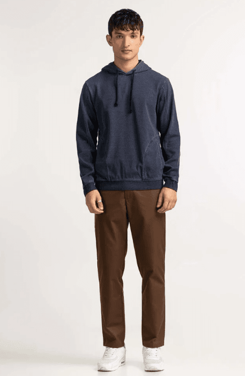 Elevate your casual wardrobe with this Blue Pull Over Hoodie with Ribbed Trim. Featuring long sleeves, ribbed cuffs, and hem, it delivers a sleek and modern finish. The regular fit offers both comfort and style, making it ideal for everyday wear, casual outings, or layering on cooler days. Crafted with high-quality fabric, this hoodie ensures durability, warmth, and a versatile look that never goes out of style.