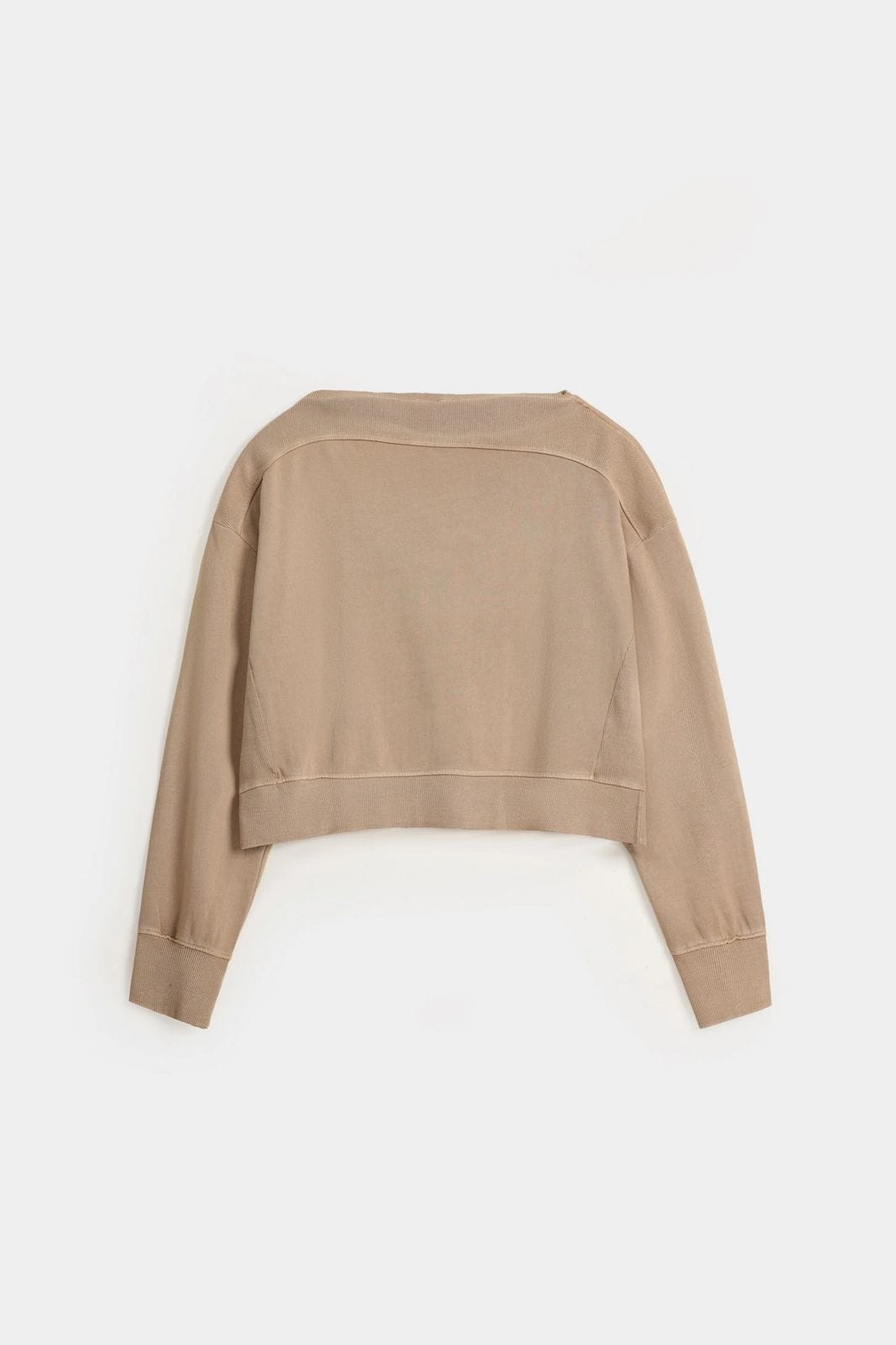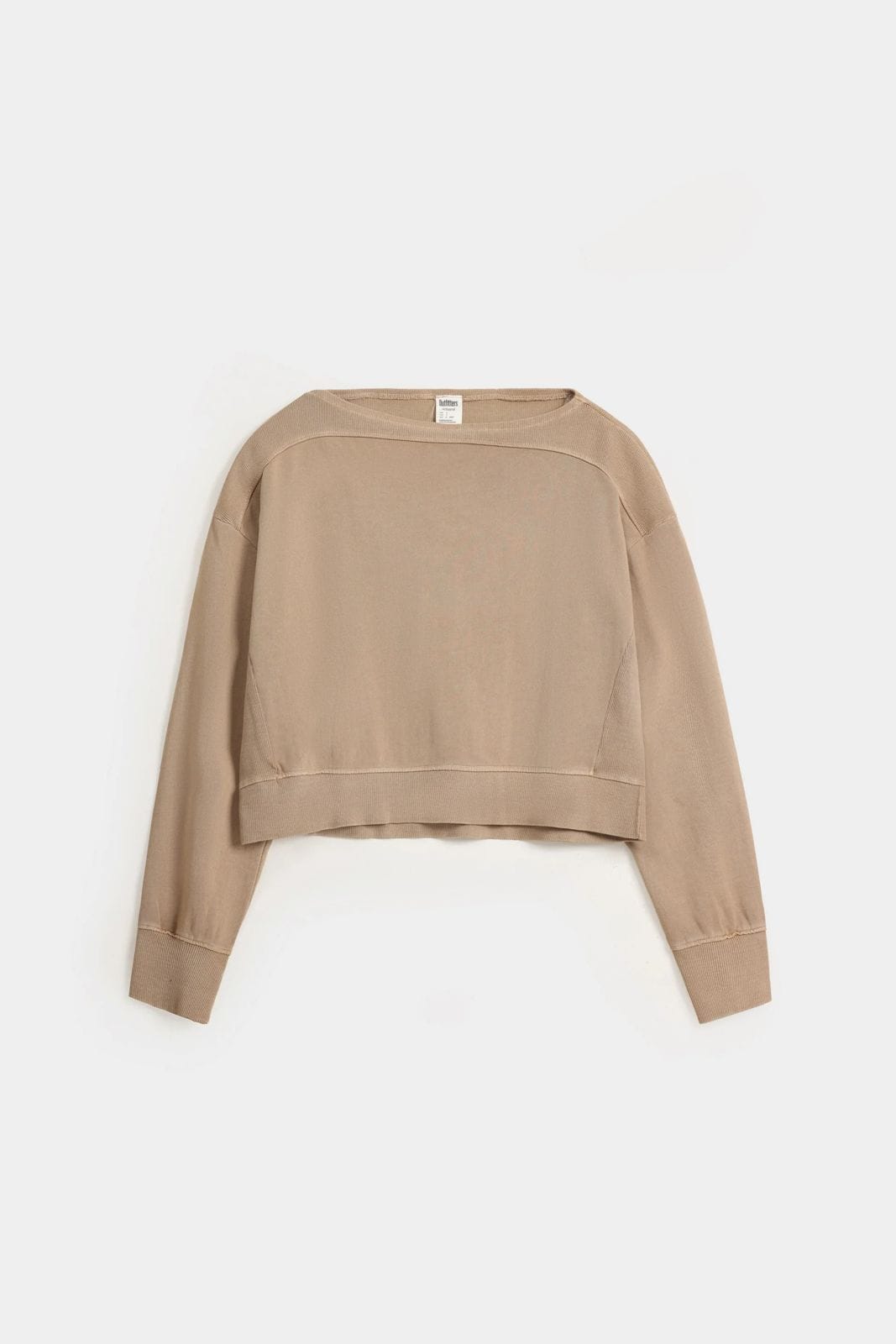 Stay cute and comfy with our Super Cropped Boat Neck Sweatshirt! Its soft cotton fabric and relaxed, boxy fit make it your go-to for effortless style.