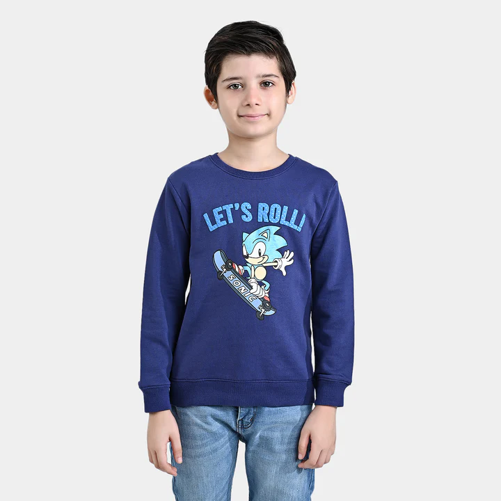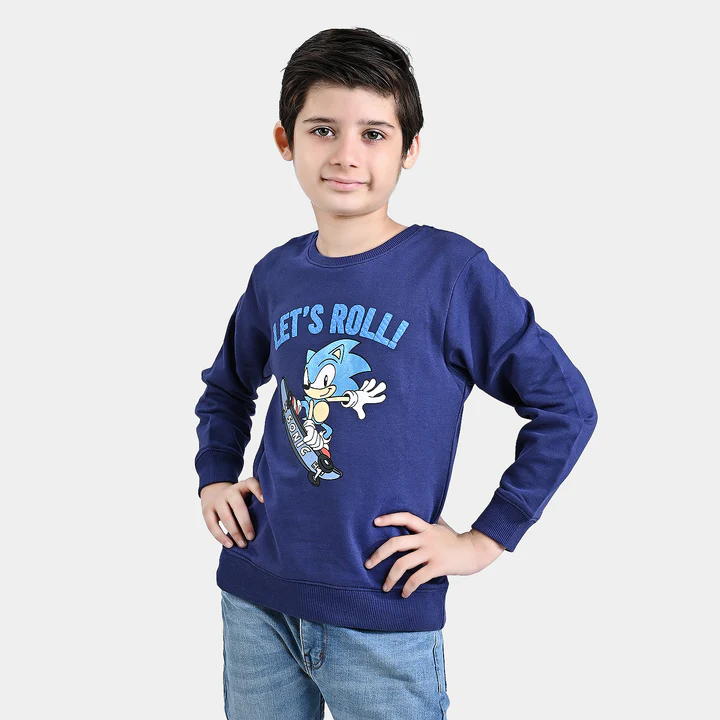 Boys Cotton Terry Sweatshirt -Navy Blue