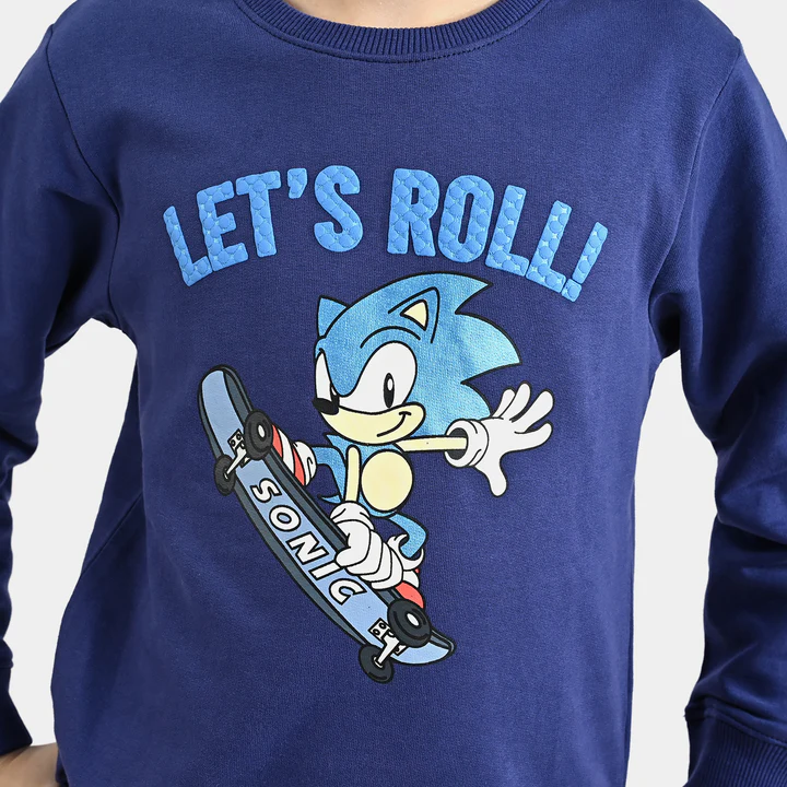 Get him ready for adventure with the Boys Cotton Terry Sweatshirt -Navy Blue. Crafted from soft cotton terry, it offers warmth, comfort, and all-day coziness. The fun “Let’s Roll” design adds a playful touch, while the classic navy blue color makes it easy to style for school, play, or casual outings. A perfect mix of comfort and cool vibes!
