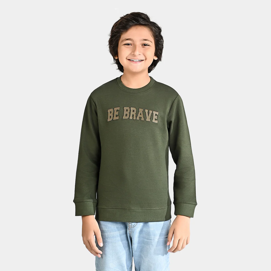 Boost his confidence and style with the Boys Jacquard Sweatshirt Be Brave-Green. Made with soft, cozy fabric and a smart jacquard design, it keeps him warm while adding a bold, trendy touch. The inspiring “Be Brave” detail makes it perfect for playtime, or casual outings. A stylish pick for boys who love comfort with attitude!