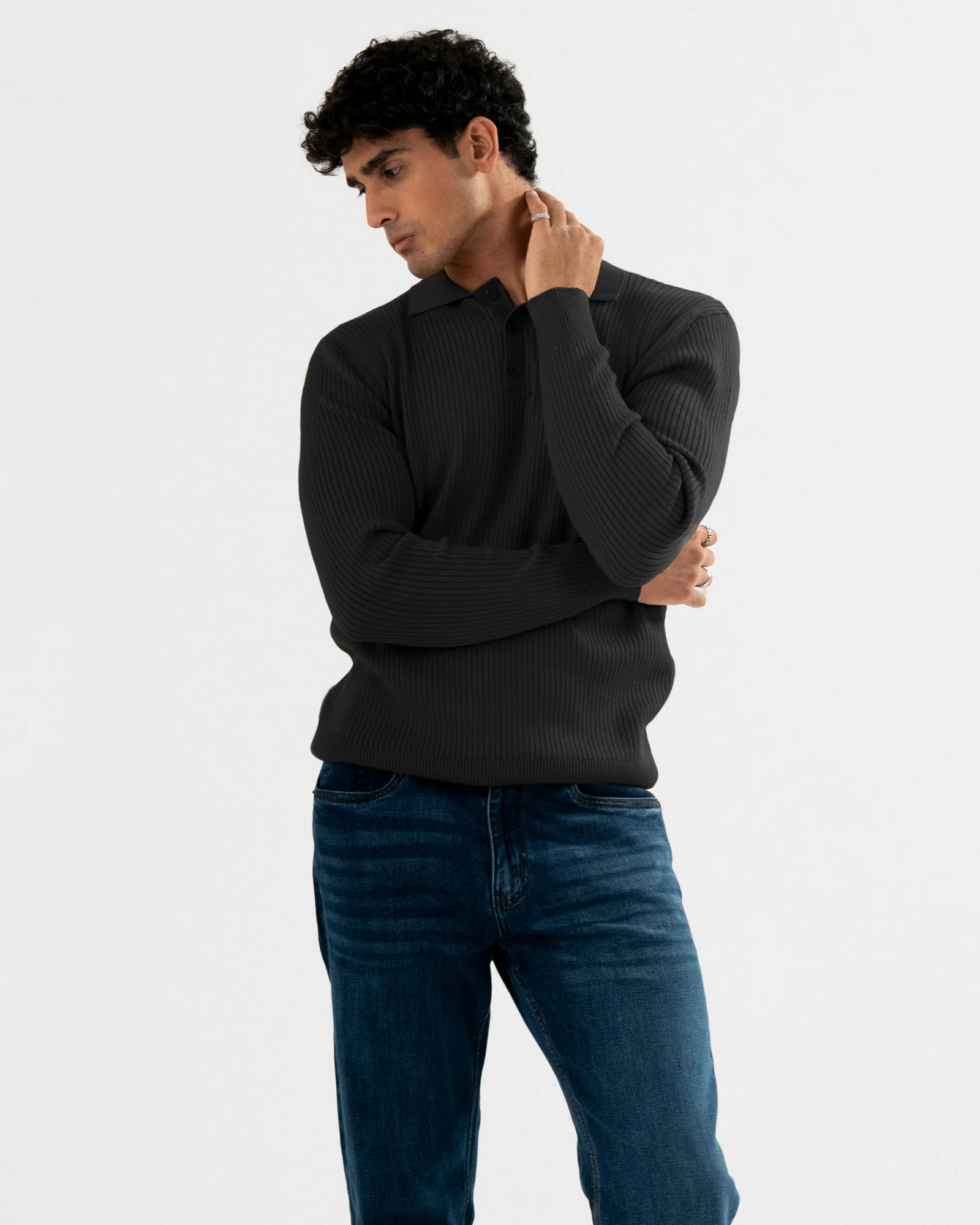 This men’s solid polo long-sleeve sweater is crafted from soft knitted fabric, providing reliable warmth, lasting comfort, and a smooth, flattering fit. Its classic polo design offers versatile styling options—perfect for casual outings, office wear, or layering on cooler days—a timeless essential for a polished, everyday look.