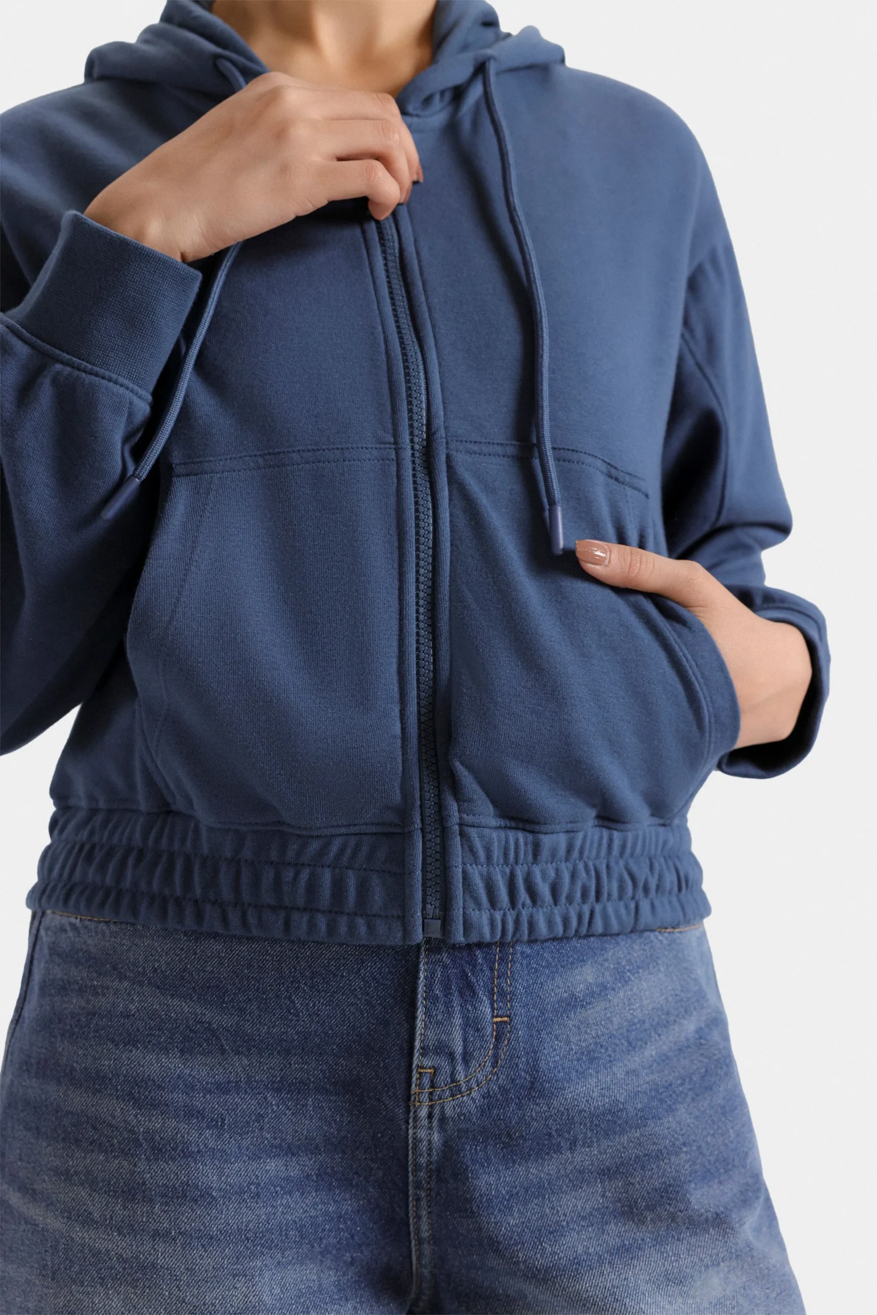 Stay stylish and comfy in this super cropped zipper hoodie. Adjustable draw-cord and full sleeves make it perfect for layering or wearing solo.