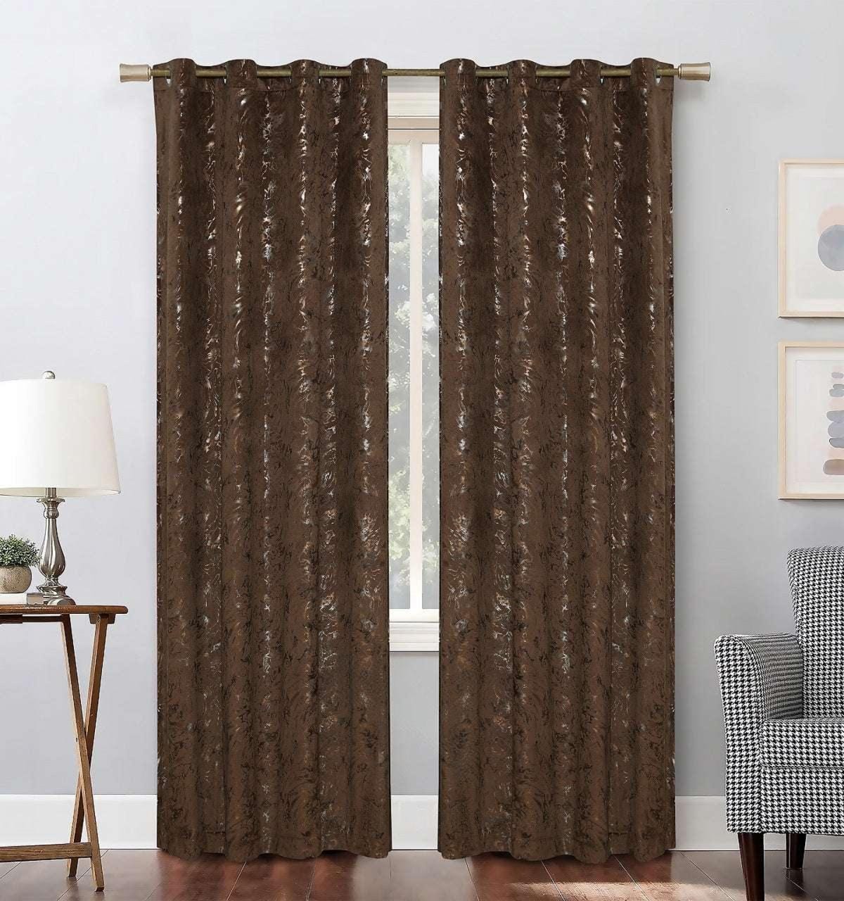 Printed Texture Velvet Grommet Top Curtains – 1 Pair (58 x 90 Inches)