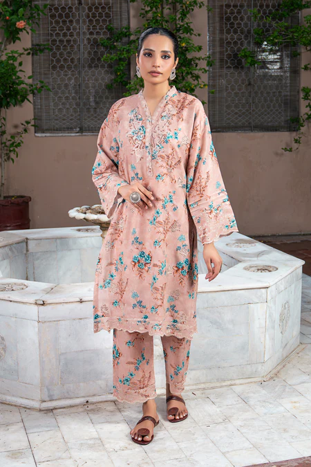 Elevate your style with this 2-piece stitched embroidered khaddar set, featuring a beautifully printed embroidered shirt and matching trouser, both crafted in premium khaddar fabric for comfort and elegance.