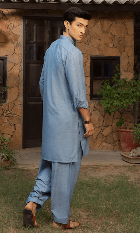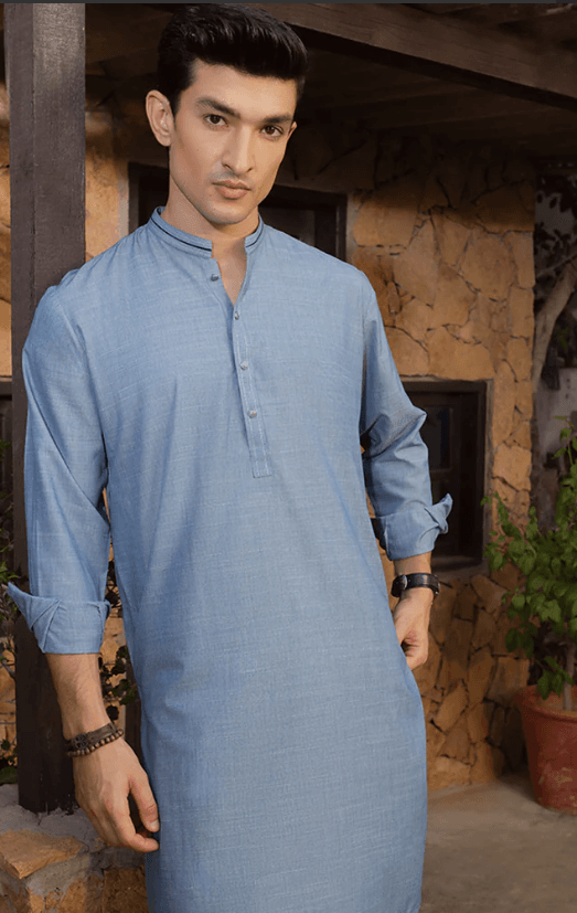 The  Eminent Men’s Kurta Shalwar Suit  in elegant blue embodies timeless sophistication and refined craftsmanship. Made from premium blended fabric, it offers a smooth texture, breathable comfort, and a graceful drape. The rich blue tone adds a touch of modern charm while maintaining traditional appeal, making it perfect for festive occasions, formal gatherings, or cultural events. Designed with a regular fit and fine detailing, this ensemble delivers both style and comfort, ideal for the modern gentleman.