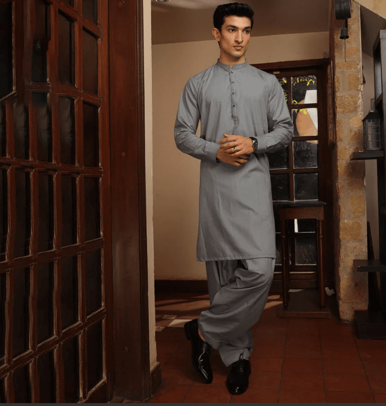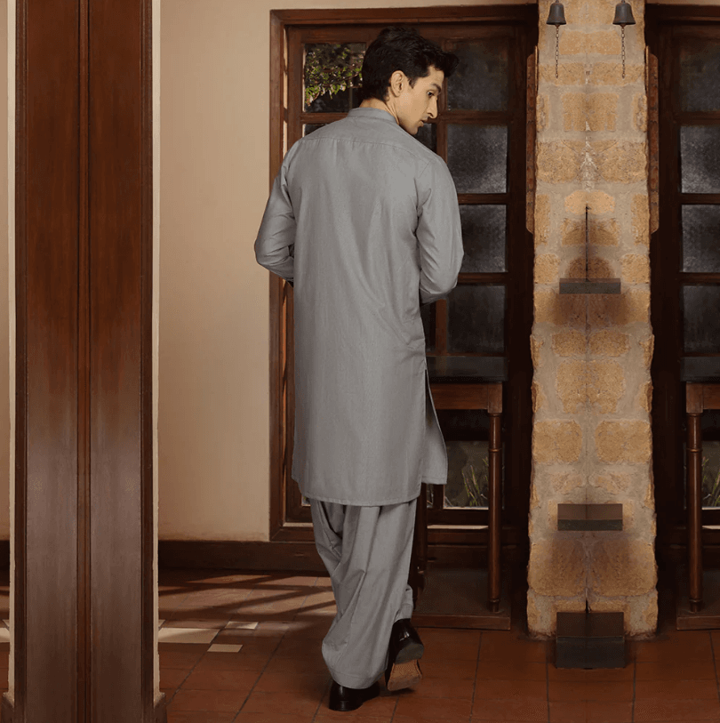 Eminent Men’s Trim Fit Shalwar Suit – Mid Grey