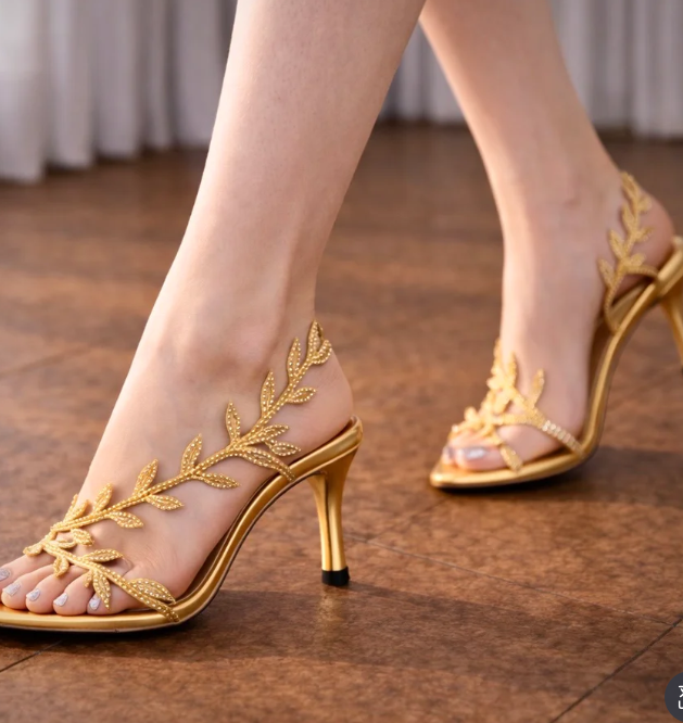 The Leaf Embellished Open Toe Heel is designed to bring elegance and sparkle to your look with its delicate leaf-inspired embellishments. The open-toe design adds a modern, feminine touch while allowing a comfortable and stylish fit. Perfect for parties, weddings, or special occasions, this heel beautifully enhances both formal and festive outfits with its graceful and eye-catching detail.