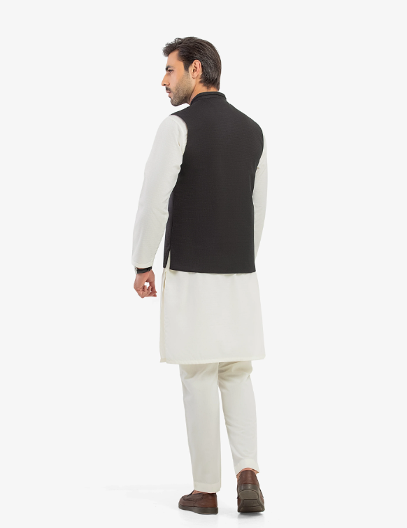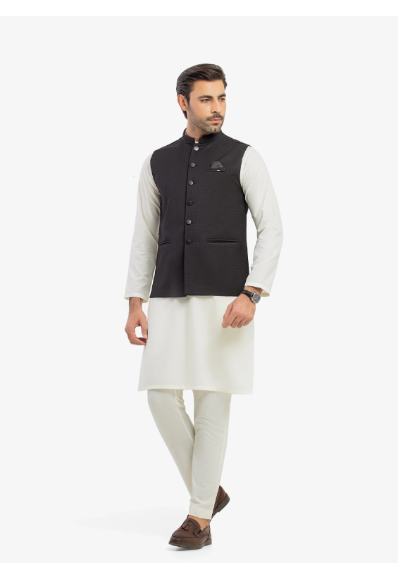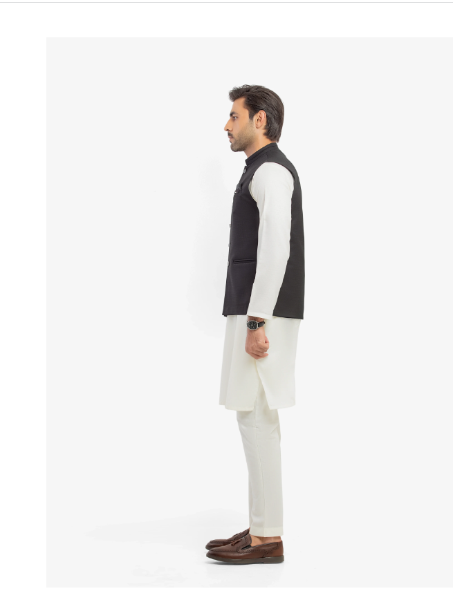 This men’s plain kurta with classic waistcoat is crafted from premium suiting fabric and tailored in a regular fit for a refined, comfortable look. Designed to offer timeless elegance, it’s perfect for formal gatherings, festive occasions, and traditional events. The clean, minimal style ensures effortless sophistication.