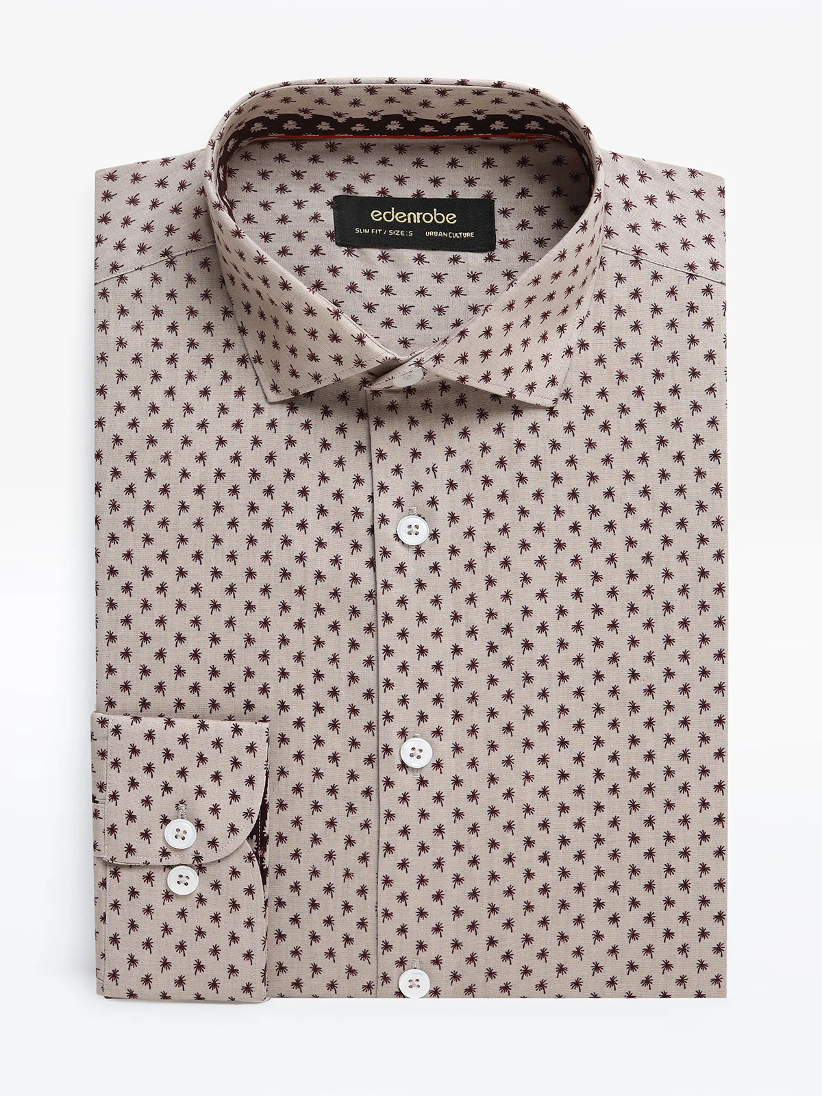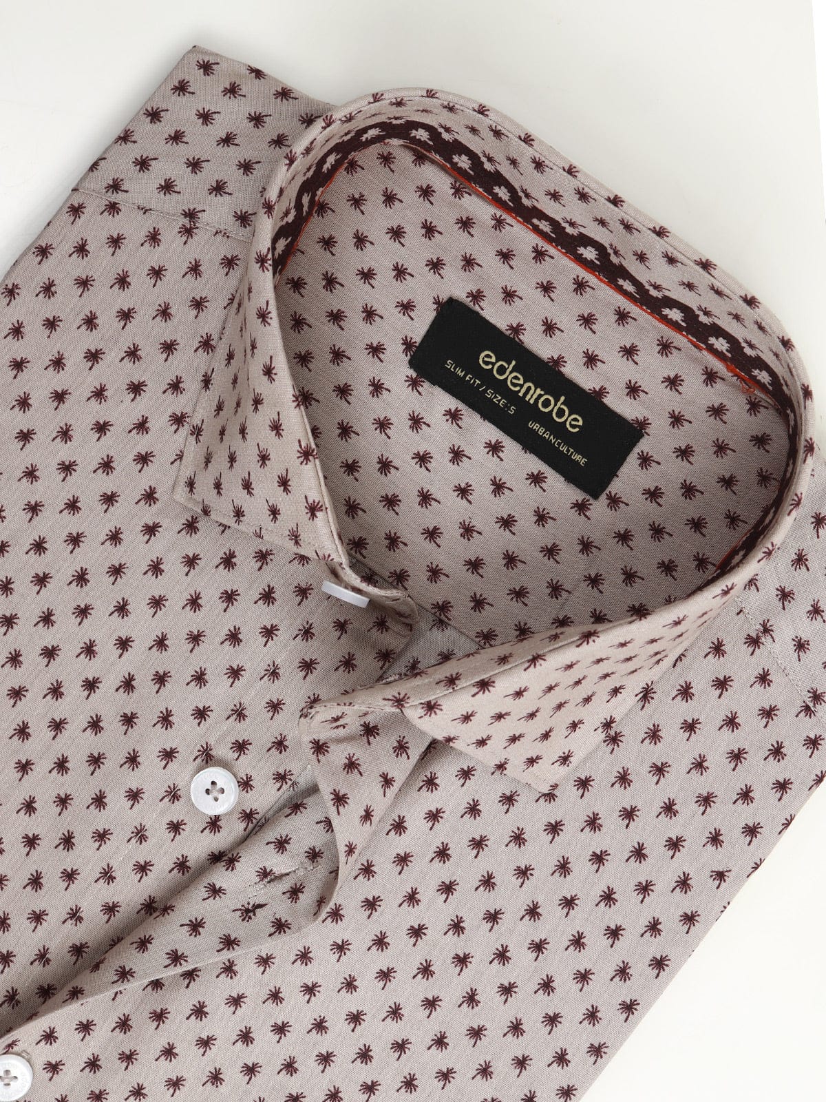 Make a sharp impression with this men’s slim fit coffee-colored floral shirt, expertly crafted for those who appreciate detail and modern sophistication. Made from premium poplin fabric, it offers a smooth, lightweight feel and a crisp appearance, perfect for both smart-casual and semi-formal settings.