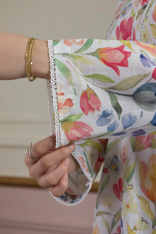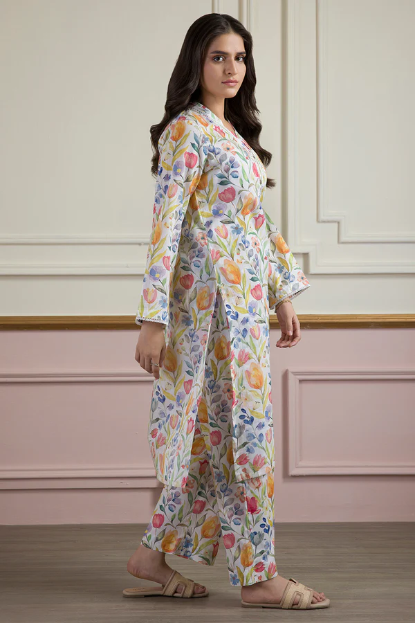 This Off White Cross Slub women’s Kurta Trouser set features a beautiful printed design crafted from premium Cross Slub fabric.