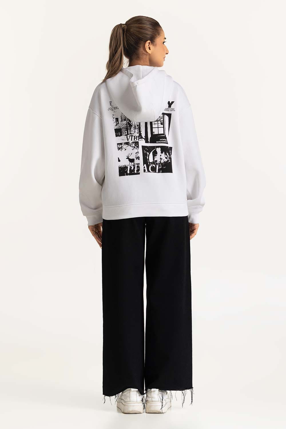 White Escape Oversized Zipper Hoodie