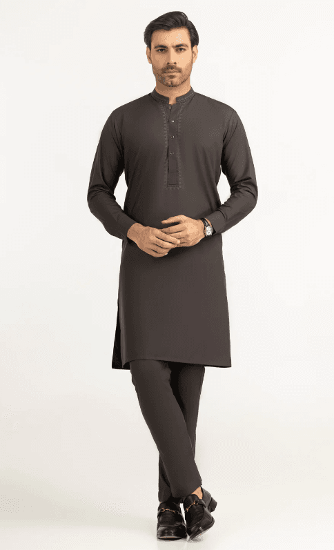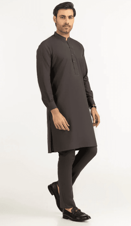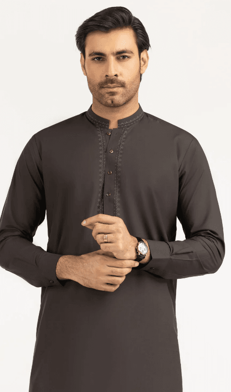 Crafted with timeless simplicity and refined elegance, this **Taupe Blended Fabric Formal Kameez Shalwar** paired with a matching waistcoat defines modern sophistication. The luxurious blended fabric offers a smooth drape and lasting comfort, while the regular fit ensures a sleek, confident look—perfect for formal gatherings or festive occasions.