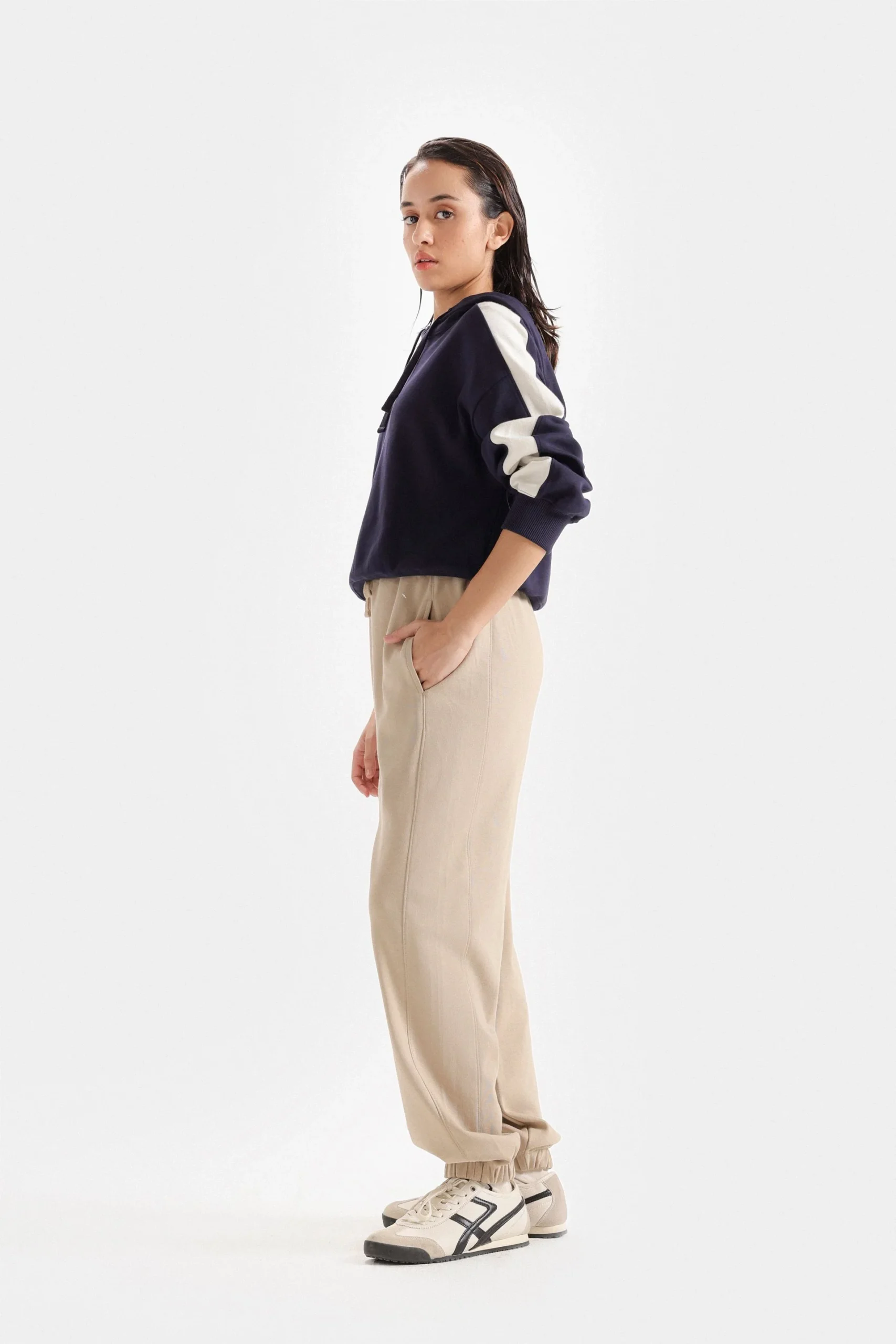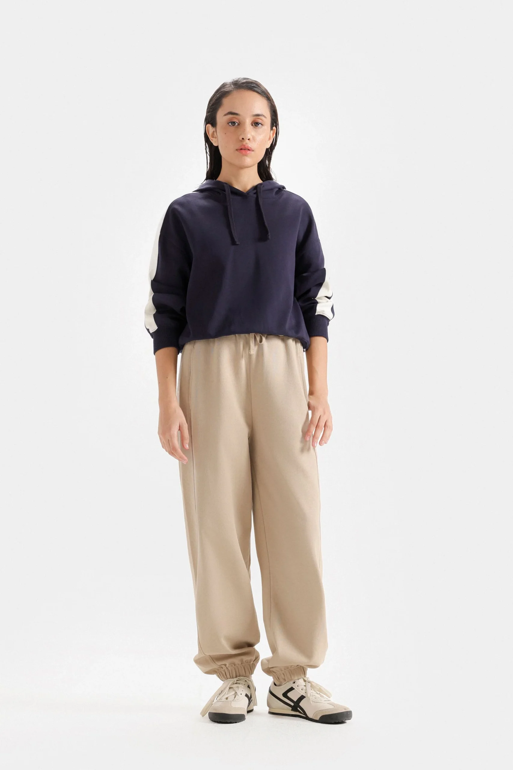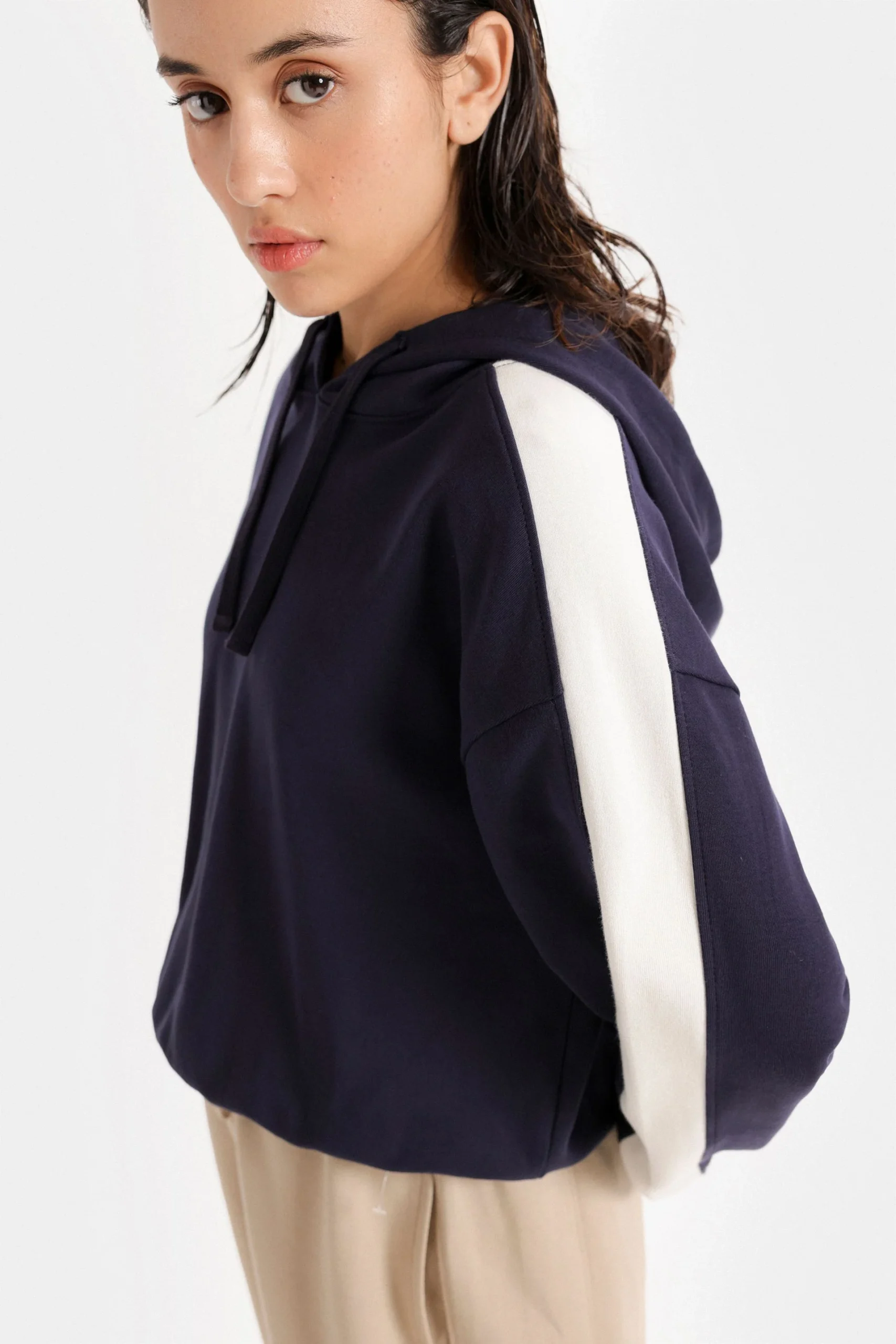 Stay comfy and stylish with this Twilight Cropped Hoodie, featuring sleek sleeve stripes for a modern twist. Perfect for casual layering.
