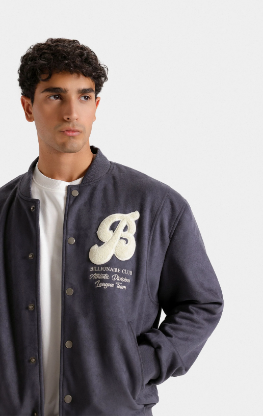 Elevate your layering game with the Varsity Bomber Jacket, a sophisticated staple that bridges classic sportswear and contemporary style. The streamlined button-up closure and full sleeves provide both structure and comfort, making it an ideal choice for transitional dressing. Whether paired with tailored trousers or casual wear, this jacket delivers refined versatility and timeless appeal.